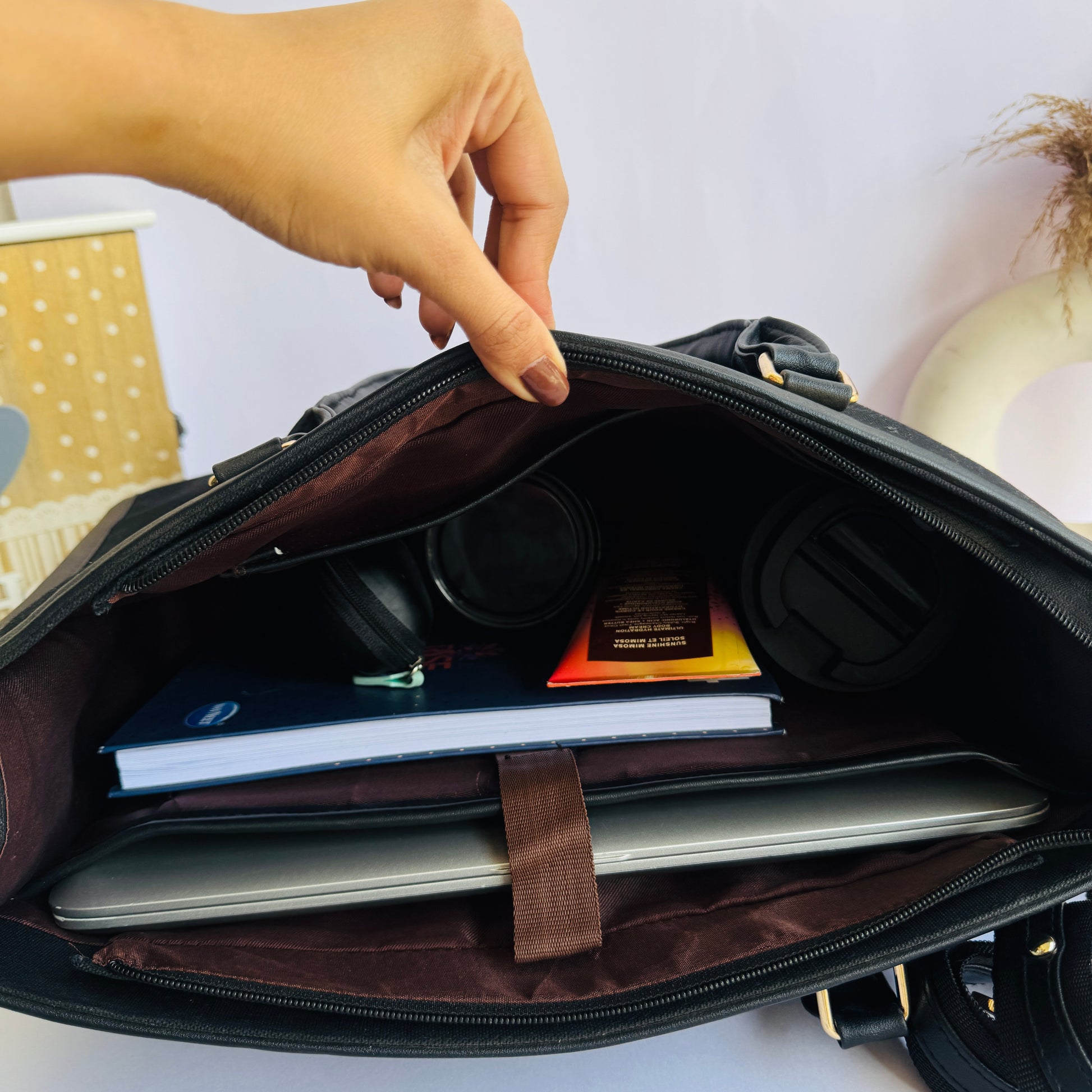 - Spacious Main Compartment: Roomy enough to carry your iPad, diary, charger, water bottle, and all your daily essentials.
