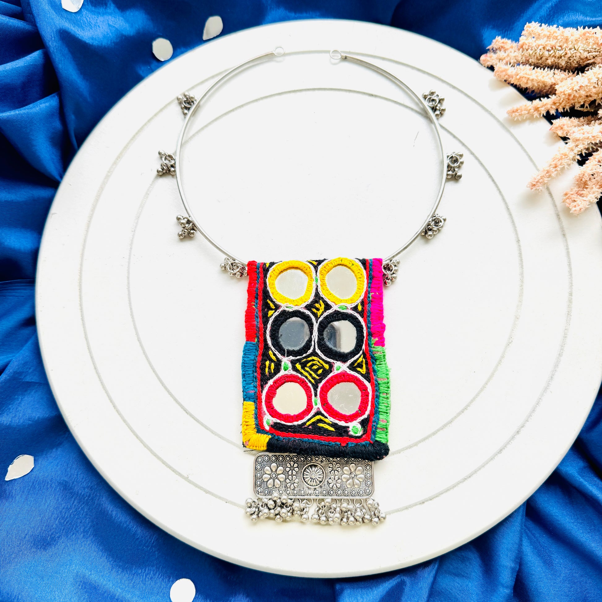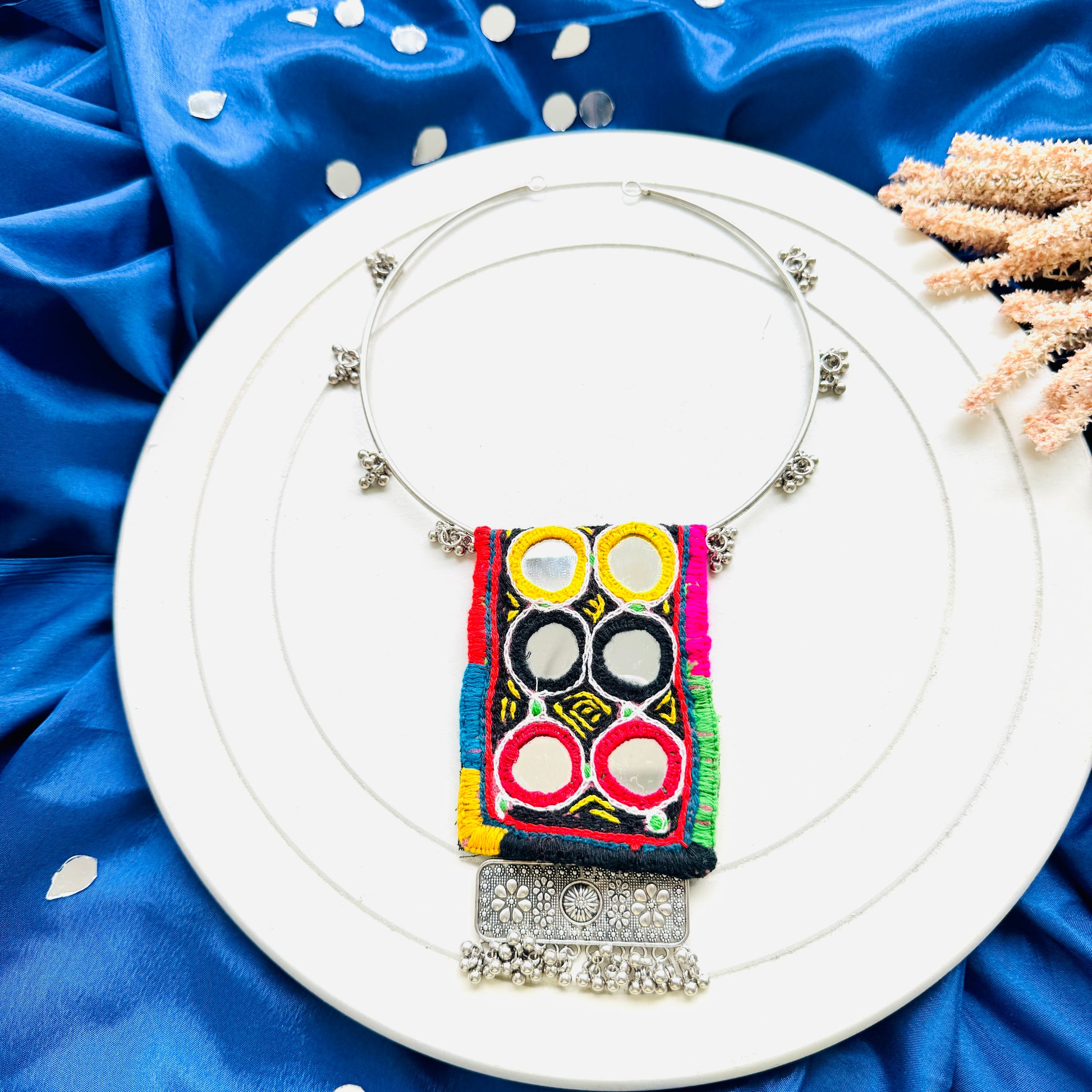 Elevate your Navratri look with our exquisite collection of traditional jewellery. Each piece is crafted to perfection, blending intricate designs with vibrant colors to complement your festive attire. Celebrate with elegance and style this Navratri season.