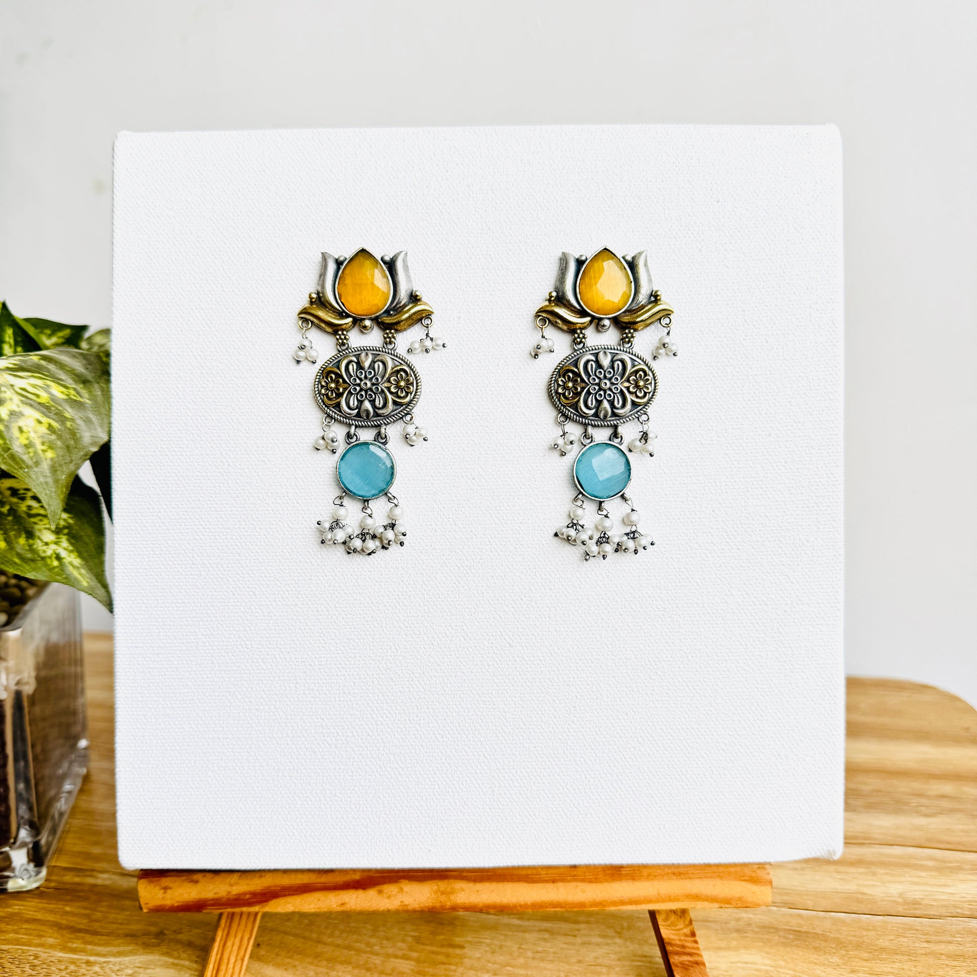 Make a statement on your special day with these exquisite German silver earrings from our wedding collection. Crafted with precision, the earrings feature timeless design and intricate detailing, offering a sophisticated touch to your look.